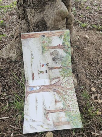 Tot aquest petit àlbum està molt ben cuidat tant a la seva enquadernació de tela com la presentació de la portada de les branques d’arbres i la seva contraportada ambdues en cartró i amb un tamany ideal per les mans dels infants.