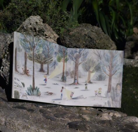 Amb aquests paràmetres la il·lustradora Verónica Fabregat amb el segell de l’Editorial AKIARA publiquen un àlbum sense paraules, on els seus protagonistes es troben a un bosc per jugar a amagar-se.