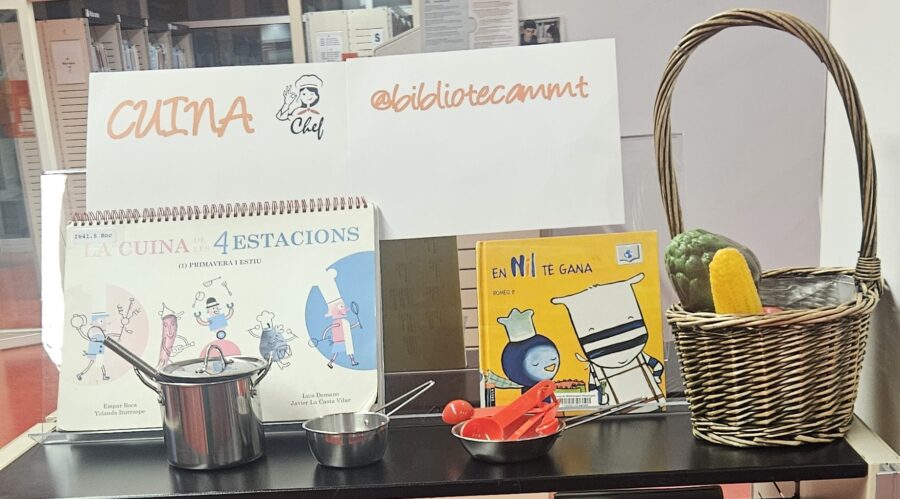 ![]() Els llibres de receptes, de històries de cuina surten dels seus prestages i s'instal.len a la Sala Infantil, de la Biblioteca Mestre Martí Tauler acompanyats de cassoles, paelles i estits de cuina. Veniu a cuinar històries?.
